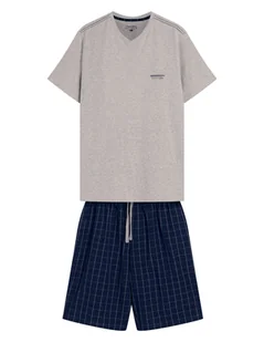 Męska piżama z krótkim rękawem, z wilkiem, szara