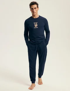 Bluzka z długim rękawem Dekolt okrągły Idealny również jako homewear Koszulka z nadrukiem Luźny, komfortowy krój Model z kieszeniami Nogawki wykończone ściągaczem Pakowany w pudełko Szeroka guma w pasie Troczki w talii Bawełna: 100%