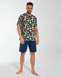 Męska piżama z krótkim rękawem, z łapami niedźwiedzia, granatowa