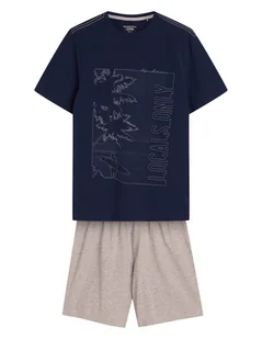 Męska piżama z krótkim rękawem, z napisem "ŚPIOCH", granatowa