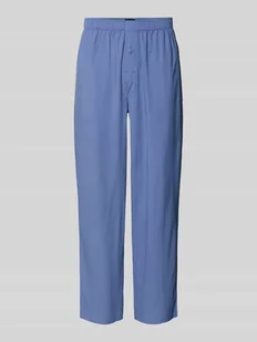 Spodnie od piżamy męskie BOSS;Model ‘Chris’;Efekt: jednolity kolor;Krój: Krój comfort fit;Aplikacja: Wyhaftowane logo, napis z logo;Zapięcie: Zapięcie na 1 guzik;Pas: