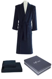 Męski szlafrok LORD + ręczniki + pudełko Ciemnoniebieski S