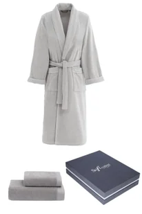 Męski szlafrok LORD + ręczniki + pudełko M Szary