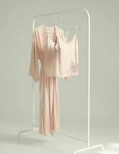 Lekki szlafrok damski Capriccio otula jak pierwszy poranny promień – cicho, aksamitnie, z uważnością na każdy szczegół. Szlafrok w kolorze pudrowego różu zaprojektowano z myślą o porankach, które zaczynają się powoli i wieczorach, które nie chcą się kończyć. Prosty krój z szerokimi rękawami i pasek wiązany w talii tworzą luźny rytuał elegancji – bez wysiłku, a z wyczuciem. klasyczna długość do kolan rękawy o luźniejszym kroju ¾ pasek do przewiązania w talii subtelny, pudrowy odcień z satynowym wykończeniem Skład materiału: