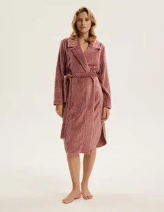 Szlafrok Cordi różowy to wyjątkowe połączenie miękkości i kobiecej elegancji. Jego średnia długość subtelnie otula sylwetkę, a kołnierz szalowy nadaje całości klasycznego wdzięku. Delikatny róż w odcieniu pudrowym rozświetla, wprowadzając do stylizacji romantyczną lekkość i subtelną aurę luksusu. Faktura materiału o dekoracyjnym splocie sprawia, że model nabiera wyjątkowego charakteru i wyróżnia się na tle klasycznych szlafroków. To wybór idealny na poranki pełne spokoju i wieczory, w których liczy się chwila tylko dla siebie.