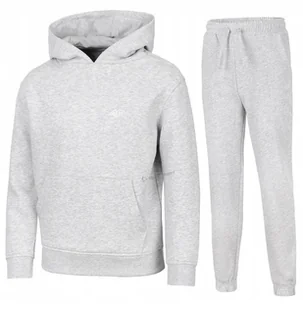 Chłopięcy dres sportowy 4F Marka/model: 4F JSWSM1860 / JTROM1188 Kolor: Jasny szary melanż Materiał: 80% bawełna, 20% poliester, Ocieplane wnętrze bluzy Nieocieplone wnętrze spodni 2 kieszenie boczne w bluzie Kieszenie spodnie: 2 otwarte Ściągacz na dole i przy rękawach Zintegrowany kaptur O marce: