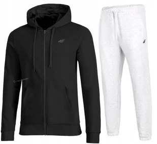 Męski dres sportowy 4F Marka/model: 4F SWSM1768 / TROM1139 Kolor: Bluza czarna / spodnie jasny szary melanż Materiał: 80% bawełna, 20% poliester Gramatura: 300 gsm Nieocieplone wnętrze bluzy i spodni Kieszenie bluza: