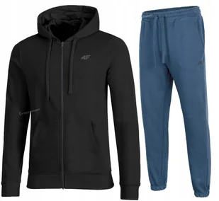 Męski dres sportowy 4F Marka/model: 4F SWSM1768 / TROM1140 Kolor: Bluza czarna / spodnie denim Materiał: 80% bawełna, 20% poliester Gramatura: 300 gsm Nieocieplone wnętrze bluzy Ocieplane wnętrze spodni Kieszenie bluza: