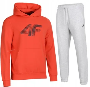 Czesane wnętrze bluzy (ocieplone) gwarantuje dodatkowe ciepło, co sprawia, że dres będzie idealnym wyborem na chłodniejsze dni. Zintegrowany kaptur przy dekolcie. Elastyczne mankiety ze ściągaczem. Z przodu widoczny nadruk "4F". ZALETY:
