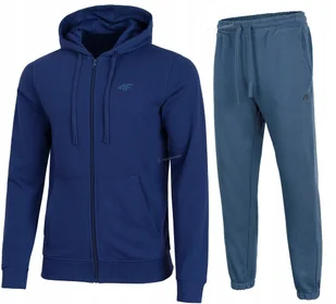 Męski dres sportowy 4F Marka/model: 4F SWSM1768 / TROM1139 Kolor: Bluza granatowa / spodnie denim Materiał: 80% bawełna, 20% poliester Gramatura: 300 gsm Nieocieplone wnętrze bluzy i spodni Kieszenie bluza: