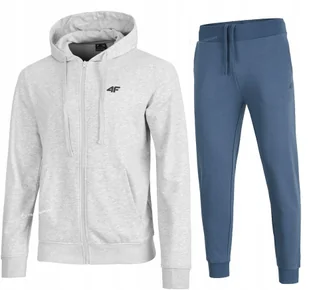 Męski dres sportowy 4F Marka/model: 4F SWSM1768 / TROM0943 Kolor: Bluza jasny szary melanż / spodnie denimowe Materiał: 80% bawełna, 20% poliester Gramatura: 300 gsm Nieocieplone wnętrze bluzy Ocieplane wnętrze spodni Kieszenie bluza: