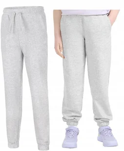 Dziewczęce, bawełniane spodnie dresowe 4F Marka/Model: 4F JTROF1509 Kolor: Jasny szary melanż Materiał: 77% bawełna, 20% poliester, 3% wiskoza Ocieplane wnętrze Kieszenie: 2 boczne Sznurek w pasie Ściągacze nogawek O marce: