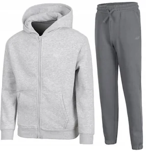 Chłopięcy dres sportowy 4F Marka/model: 4F JSWSM1859 / JTROM1245 Kolor: Bluza jasny szary melanż / spodnie antracytowe Materiał bluza: 75% bawełna, 22% poliester, 3% wiskoza Materiał spodnie: 80% bawełna, 20% poliester, Ocieplane wnętrze bluzy i spodni 2 kieszenie boczne w bluzie Kieszenie spodnie: