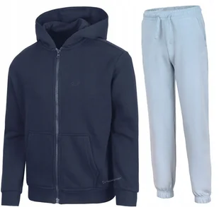 Dziewczęcy dres sportowy 4F Marka/model: 4F JSWSF1861 / JTROF1249 Kolor: Bluza granatowa / spodnie jasne niebieskie Materiał: 78% bawełna, 22% poliester, Ocieplane wnętrze bluzy i spodni 2 kieszenie w bluzie Kieszenie spodnie: 2 otwarte Ściągacz na dole i przy rękawach Sznurek w pasie Zintegrowany kaptur O marce: