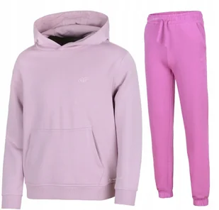 Dziewczęcy dres sportowy 4F Marka/model: 4F JSWSF1953 / JTROF1249 Kolor: Bluza jasna różowa / spodnie różowe Materiał: 80% bawełna, 20% poliester, Ocieplane wnętrze bluzy i spodni Kieszeń typu kangurek w bluzie Kieszenie spodnie: 2 otwarte Ściągacz na dole i przy rękawach Sznurek w pasie Zintegrowany kaptur O marce: