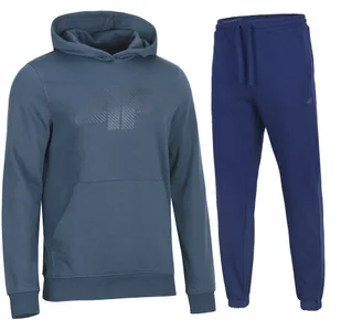 Męski dres sportowy 4F Marka/model: 4F SWSM1766 / TROM1140 Kolor: Bluza denim / spodnie granatowe Materiał: 80% bawełna, 20% poliester Ocieplane wnętrze bluzy i spodni Kieszenie bluza: typu kangurek Kieszenie spodnie: