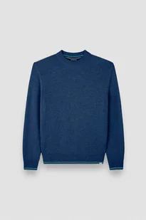 Maglia girocollo in Re-Wool finezza 8, realizzata in misto lana rigenerata morbida e pregiata. Lavorazione a costa inglese, collo, polsi e balza a costine con profili a contrasto, maniche lunghe, vestibilità regular. Composizione: 80% lana, 20% nylon. Istruzioni di lavaggio: