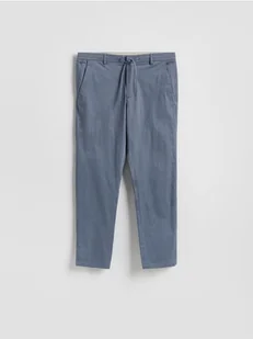 Spodnie typu jogger, wykonane z tkaniny z bawełną.