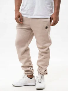 SPODNIE DRESOWE MĘSKIE BAWEŁNIANE DRESY Beżowe Jigga Wear Print Crown XXL