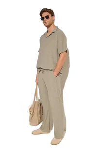 TRENDYOL MAN SPODNIE DRESOWE MĘSKIE BEŻOWE Z WIĄZANIEM I FAKTURĄ S 5DA