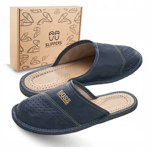 BOSS Pantofle Męskie Skórzane Domowe Komfortowe Wygodne i Trwałe r. 46