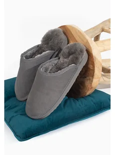 Wełniane kapcie "Emerald" w kolorze szarym - skóra welurowa - zapięcie: bez - noski: zaokrąglone - wyściółka: ogrzewająca wełna owcza - podeszwa: antypoślizgowa