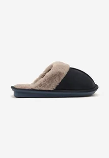 Granatowe Klasyczne Kapcie Wsuwane z Futerkiem Selomir