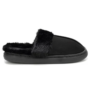 Czarne Klasyczne Kapcie Wsuwane z Futerkiem Selomir