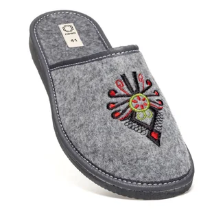 Kod producenta: FM-2089 Materiał zewnętrzny: filc Materiał wkładki: filc Materiał podeszwy: guma EVA Kolor: szary Motyw: parzenica Wysokość koturny/podeszwy:...