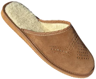 Już w dawnych wiekach używano skóry do wyrobu obuwia, odzieży czy przedmiotów codziennego użytku Opis produktu: Materiał zewnętrzny: skóra naturalna zamszowa materiał wkładki oraz wyściółki: wełna naturalna Podeszwa styrogum - antypoślizgowa i nierysująca powierzchni. Wkładka na gumowym klinie o wysokości ok 1,60 cm.