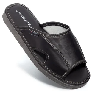 PanSzew Kapcie Męskie SKÓRZANE Odkryte Klapki Domowe KLASYCZNE Czarne Laczki 40-46