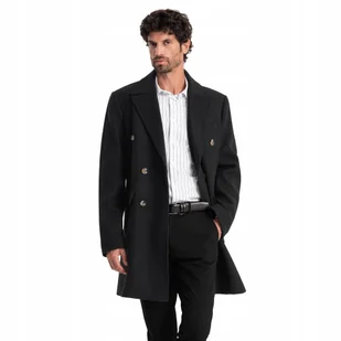 Męski dwurzędowy płaszcz z ozdobnymi guzikami czarny V2 OM-COWC-0109 XL Męski dwurzędowy płaszcz z ozdobnymi guzikami – czarny V2 OM-COWC-0109 XL Ponadczasow...