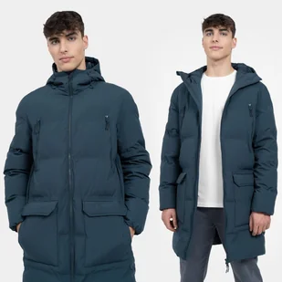 Płaszcz Męski 4F Puchowy Kurtka Z Kapturem Zimowa Granatowa H4Z22-KUMP010 XL Granatowy ★ Oryginale produkty marki 4F 4F to dynamiczna marka odzieżowa oferująca wysokiej jakości i funkcjonalne ubrania sportowe oraz outdoorowe dla aktywnych osób, ceniących innowacyjność i komfort. Świetnie się sprawdzą w każdej sytuacji! Męski płaszcz zimowy 4F to ciepła, funkcjonalna i wysoce ochronna kurtka puchowa męska, która doskonale sprawdza się jako długi płaszcz zimowy przed kolano na codzienne wyjścia, spacery i aktywność na mrozie. Dzięki technologii 4F Warm, syntetycznemu puchowi oraz hydrofobowej powłoce, ten płaszcz z kapturem męski zapewnia maksymalny komfort, ochronę przed zimnem, wiatrem i wilgocią. To idealna męska kurtka zimowa dla tych, którzy szukają stylu, wygody i najwyższej jakości wykonania w wymagających warunkach. PARAMETRY I NAJWAŻNIEJSZE INFORMACJE: