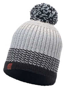Czapka w kolorze szarym - ogrzewający i delikatny dla skóry materiał - właściwości termoregulacyjne - podszewka: polar - detale: tekstylny pompon - wzór: na całości