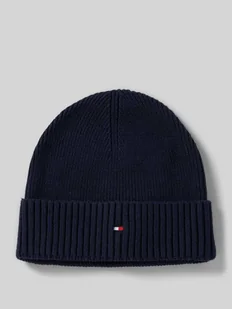 Czapka beanie męska Tommy Hilfiger;Efekt: jednolity kolor / efekt melanżu;Aplikacja: Wyhaftowane logo;Detale: szeroki brzeg;Wykończenie materiału: Prążkowana dzianina;Materiał: Mieszanka bawełny i kaszmiru