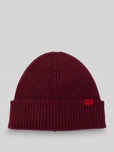 Czapka beanie męska HUGO;Model ‘Xola’;Efekt: jednolity kolor;Aplikacja: Naszywka z logo;Detale: szeroki brzeg;Wykończenie materiału: Prążkowana dzianina;Materiał: czysta żywa wełna