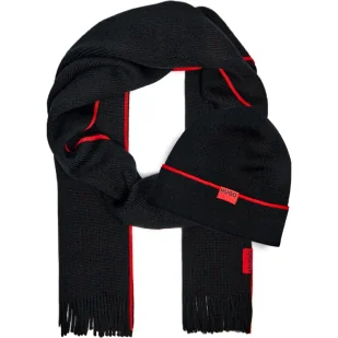 HUGO Szal + czapka Zaschel z dodatkiem wełny