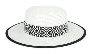 Kapelusz Damski Męski Letni Plażowy Słomkowy Etniczny Regulowany Boater rozmiar 58 kolor biały lekki kapelusz na lato typu boater, z ozdobną tasiemką w geome...