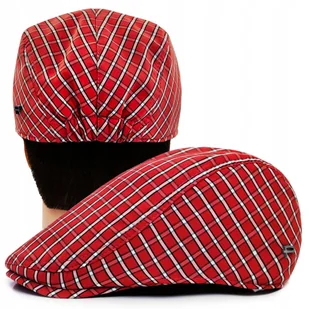 KASZKIET Męski Bawełniany na Lato Czapka w Kratę Cienki CZERWONY Pako Jeans
