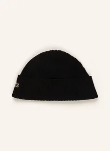 Beanie. Dzianina prążkowana. Z wywinięciem. Haft z marką z przodu. Czysta wełna