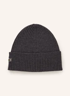 Beanie. Dzianina prążkowana. Z wywinięciem. Haft z marką z przodu. Czysta wełna