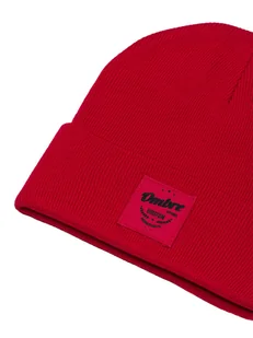 Ombre czapka męska z naszywką czapka zimowa czapka sportowa czapka z dzianiny termicznej H103, czerwona
