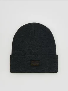 Reserved - Czapka beanie z naszywką - ciemnoszary