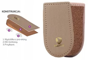 wyrównanie nierówności kończyny dolnej; zapalenie ścięgna Achillesa. Zalety wkładek Viva Kid: dobre wsparcie w przypadku asymetrii kończyn u dzieci; korkowy klin dobrze podpierający i podwyższający krótszą nogę; przyjemna wyściółka z pro-skóry; możliwość wklejenia utrzymuje podpiętki na właściwym miejscu; różne wysokości do wyboru; idealne do obuwia codziennego z zakrytą piętą. DANE TECHNICZNE: Materiał wyściółki: