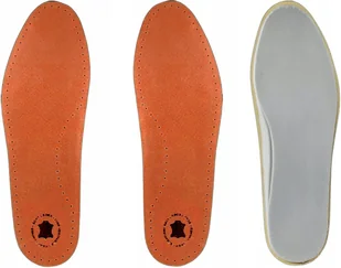 G10-53 Skórzane wkładki do butów z poduszką na piance lateksowej - BRĄZOWE 43 Wierzch wkładki pokryty jest wysokiej jakości gładką skórą naturalną. Spód wkła...