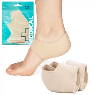 dł. 11 cm, szer. 9,5 cm Jak używać? Osłonki można stosować przez cały dzień i w nocy. Można je nosić w dowolnych butach. Nie przeszkadzają w chodzeniu. Ukryte pod skarpetami pozostają niewidoczne nawet w odkrytym obuwiu.