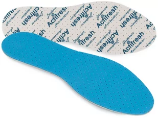 Wkładki przeciwpotne ActiFresh Przeciwpotne wkładki do butów, wykonane z pianki lateksowej z dodatkiem środka bakteriobójczego. Pochłaniają pot i neutralizują przykry zapach stóp. Zapomnij o przykrym zapachu! Wkładkę umieszczamy w bucie jasną stroną do góry. Grubość wkładki to około 3,2 mm. Kod produktu: