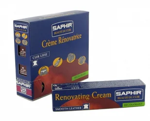 RENOVATING CREAM TUBE SAPHIR 25ml - Krem do renowacji skór na zadrapania Krem do renowacji skór, koncentrat żywicy zawierający mocny pigment, który pozwala na pokrycie wszelkiego rodzaju, rys, zadrapań, przetarć, zarysowań, drobnych uszkodzeń skóry. Pozwala na przywrócenie wyblakłych kolorów. W skład kremu wchodzą minerały, wosk pszczeli, dzięki czemu skóra staje się dobrze odżywiona i odporna na wodę. Produkt szybkoschnący. Idealny do renowacji i prac konserwacyjnych.