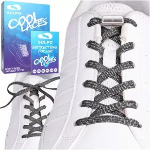 Sznurówki bez wiązania z zapinkami mocne sport szare z brokatem