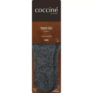 Wkładki do butów ocieplające gruby filc coccine r. 46 Wykonana z grubego filcu, prosta, lekka doskonale izolująca stopę przed zimnem. Zapewnia właściwą temperaturę stopom, a dokładnie wyścielając dno butów zapobiega powstawaniu odparzeń i niszczeniu wyściółki. Miękkość filcu poprawia również komfort w użytkowaniu obuwia. Zalecana do obuwia jesiennego i zimowego, roboczego oraz domowych bamboszy.